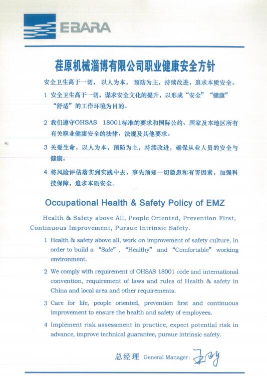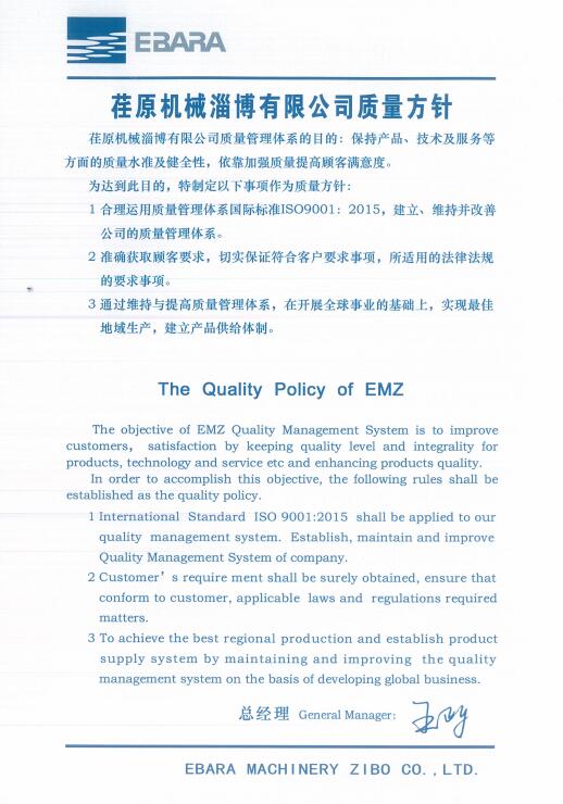 Address: New&Hi-tech Industrial Development Zone, Zibo, Shandong Province, China. Tel:86-0533-3919586 Email:emz@ebara.cn
